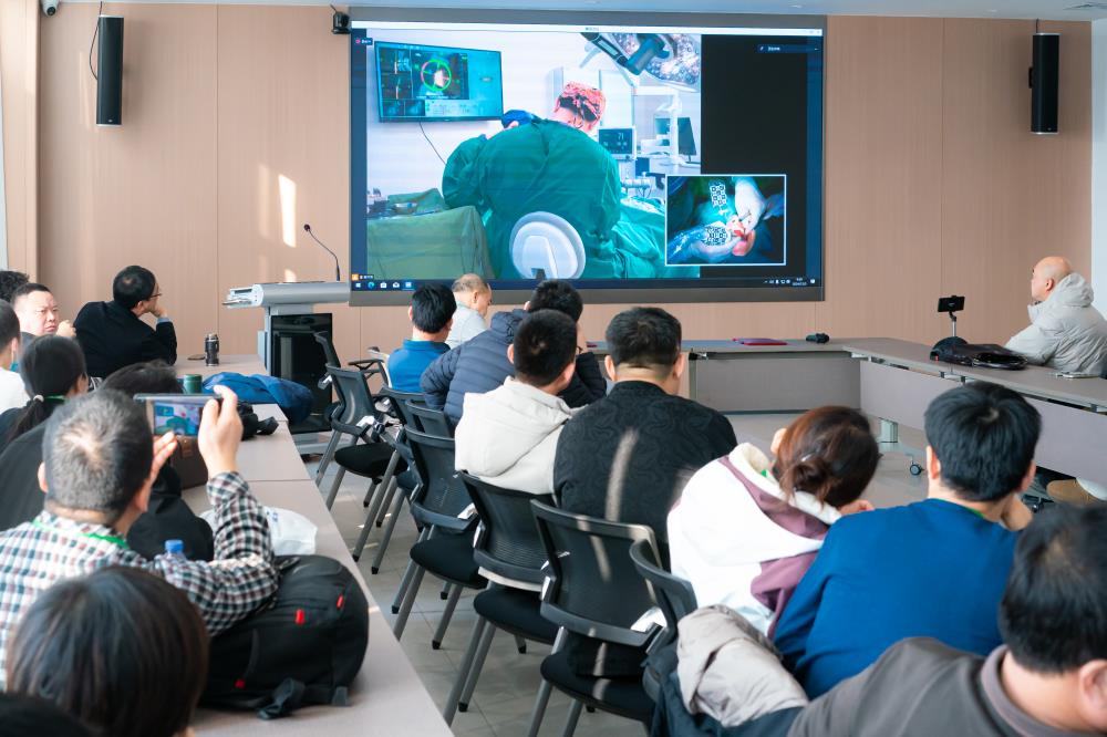 After the signing ceremony, Professor Liu Zhonghao conducted two live broadcasts of implant surgery under dynamic navigation, one "single mandibular implant surgery" and one "full-mouth edentulous jaw implant surgery", both of which used the method of cusp registration, the surgical plan is convenient and fast, the surgical process is clearly visible, and the implant accuracy is higher.