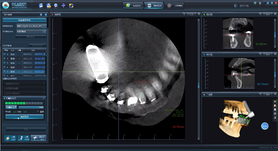 在術(shù)中,董茜茜副主任團隊通過動態(tài)導(dǎo)航軟件輔助設(shè)計下頜四顆牙根尖的三維位置,并成功在9分鐘內(nèi)完成四顆牙的根尖切除術(shù)。通過術(shù)前、術(shù)后CBCT對比驗證,四顆牙根尖的切除誤差均小于0.06mm。
