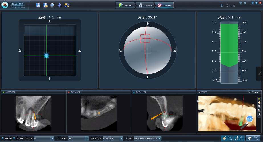 牙體牙髓手術(shù)導(dǎo)航系統(tǒng)在醫(yī)學(xué)圖像三維可視化技術(shù),實時動態(tài)指引手術(shù)方向、角度與深度,從而提高顯微根尖外科手術(shù)的精準性,還可以有效減小術(shù)區(qū)創(chuàng)傷范圍,進一步縮短手術(shù)時間,最快可在9分鐘內(nèi)完成四顆牙的根尖切除術(shù)。